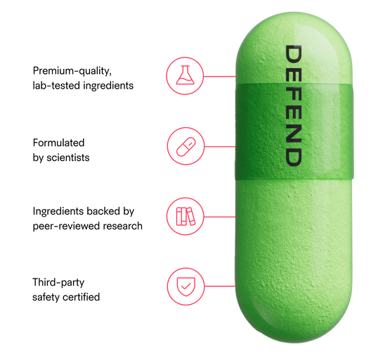 ★ ★ ★ ★ ★ 5 star rating “Love Defend! I feel like my immune system has superpowers—haven't gotten sick once since I started taking it!” VERIFIED CUSTOMER