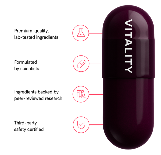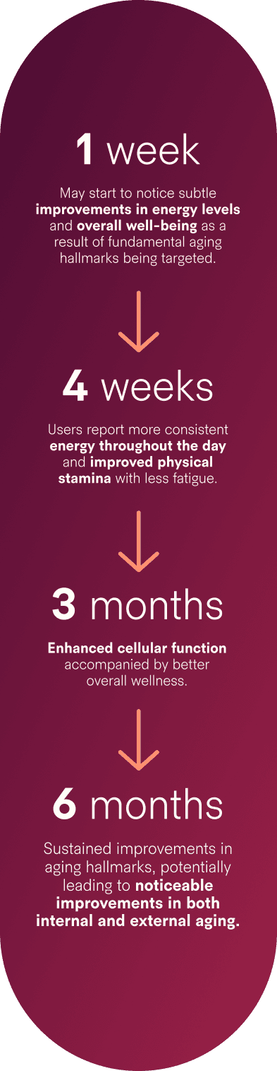 Why treat the symptoms of aging when you can address the root cause? Target all 12 hallmarks of aging at the cellular level with Vitality, a daily longevity supplement designed to help you stay younger, for longer.